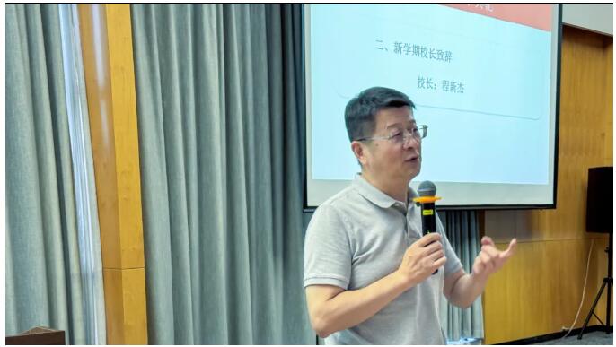 随后由程新杰校长带来新学期致辞。他笑着回顾了上半年联盟的亮眼成绩,又对同学们提出了“多探索、敢尝试” 的小期望,话语亲切又有力量,台下掌声阵阵,同学们的眼中充满了期待与向往。
