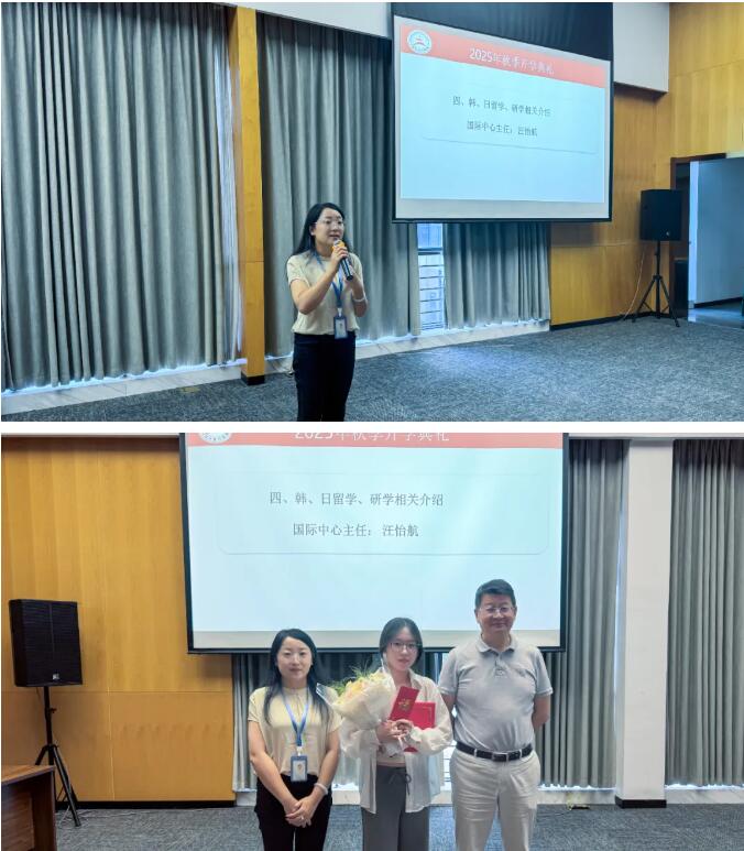想了解韩国留学、游学的同学,在国际中心主任汪怡航的讲解中过足了瘾。汪主任详细介绍了申请流程、费用补贴、生活注意事项,给了有想法的同学更多选择的机会。